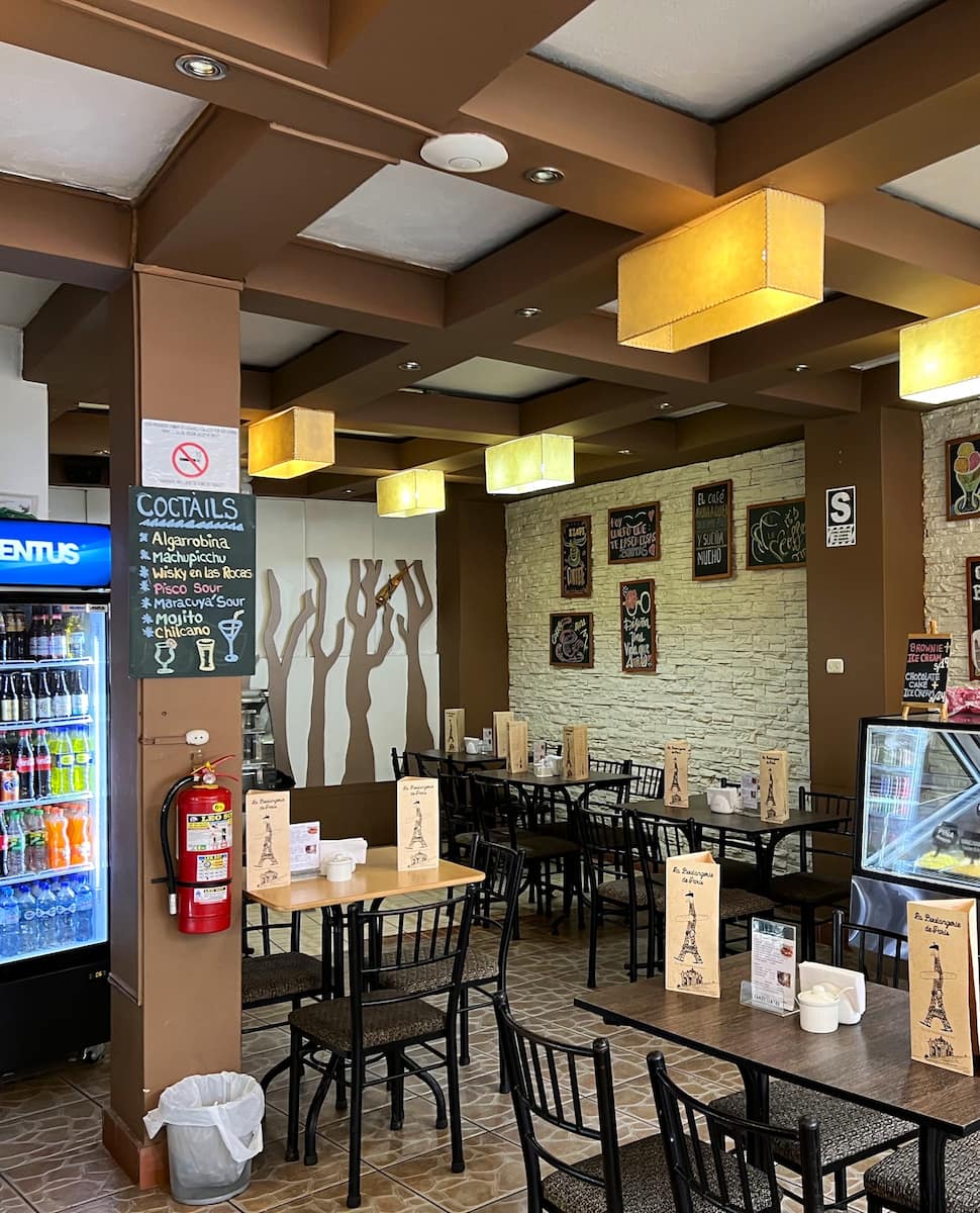 Comida local cerca. Tres excelentes lugares a menos de 50 metros de la parada de autobús: Toto’s House (abre a las 5 a. m., sándwiches de 12 a 18 soles), Restaurante Pachamama (de 11 a. m. a 10 p. m., menús fijos de 25 a 35 soles) y una pequeña tienda de comestibles que vende agua, aperitivos y productos básicos hasta las 11 p. m.