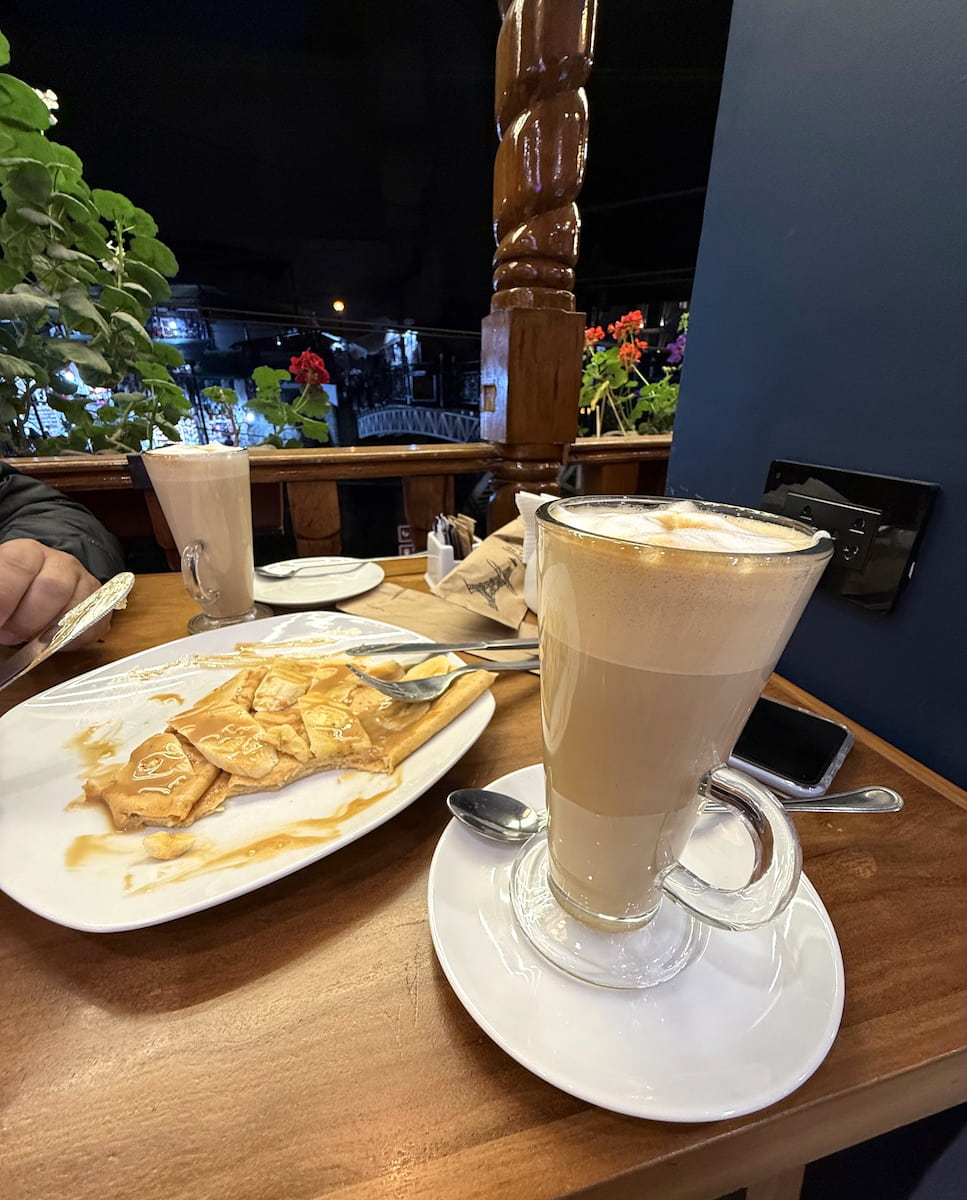 Fácil acceso al río. Hay varios puntos a lo largo de la orilla que permiten acercarse al agua, perfectos para lavar las botas de montaña o simplemente refrescarse los pies. Encontré tres pequeñas cafeterías junto al río: Café Mayu (abre a las 7:00, con magníficas vistas al río), Riverside Snacks (de 8:00 a 21:00) y Puente Café (de 6:00 a 20:00, justo al lado del puente principal).