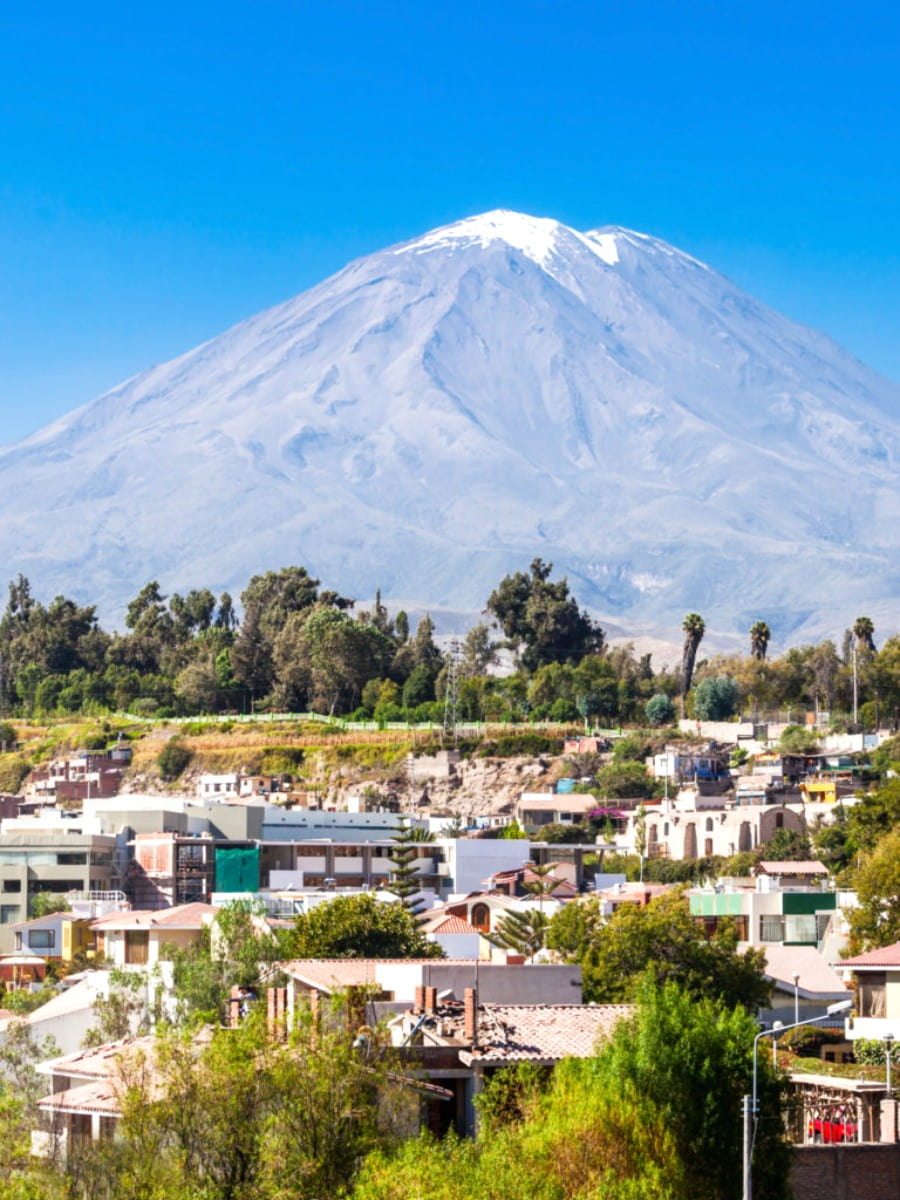 Contemplar desde el Mirador de Yanahuara la puesta de sol, viendo cómo la luz que se desvanece proyecta un cálido resplandor sobre la ciudad y el pico nevado del Misti en la distancia, es tan inolvidable como pasear por la plaza de Arequipa después de un día dedicado a descubrir las mejores cosas que hacer en Arequipa.