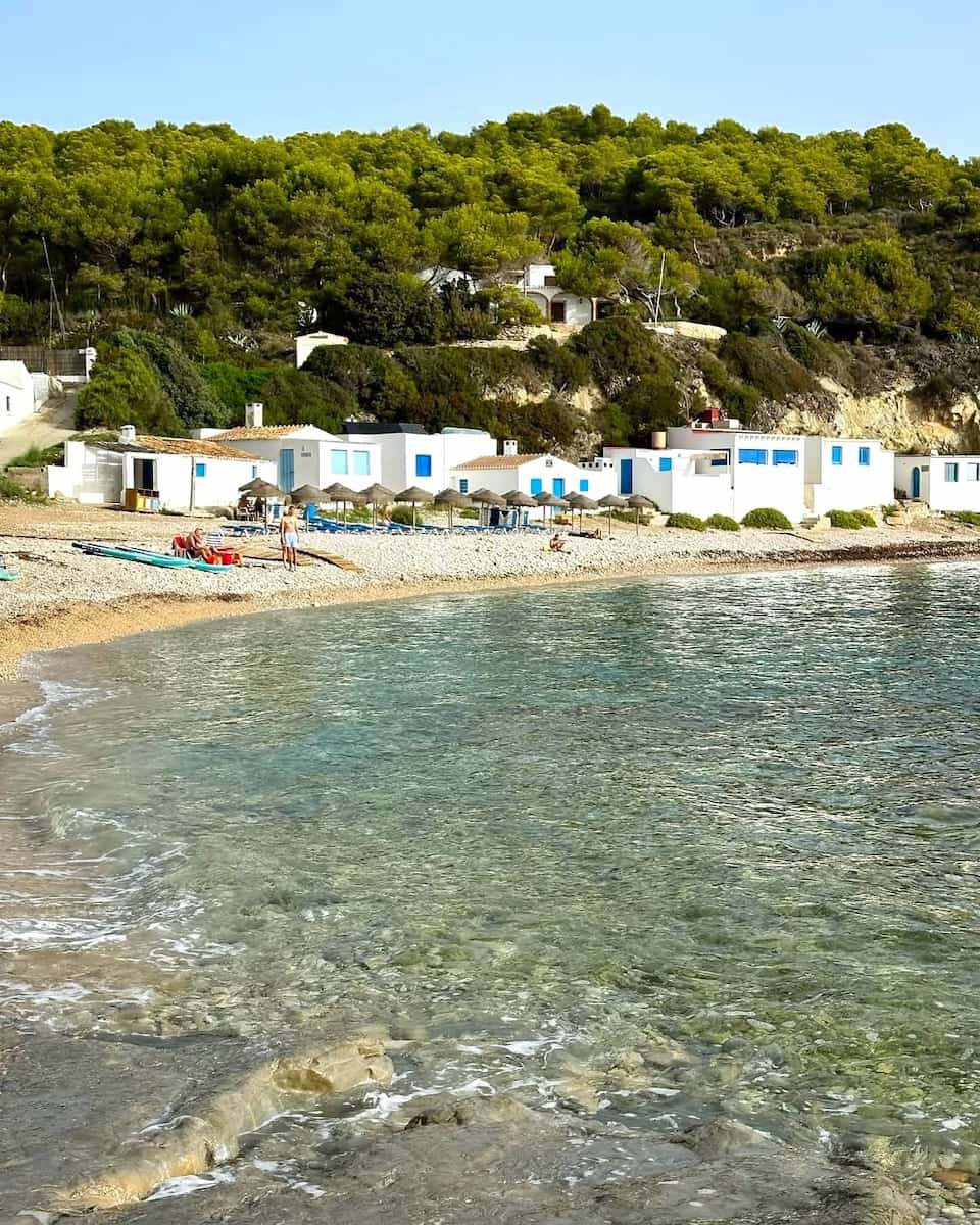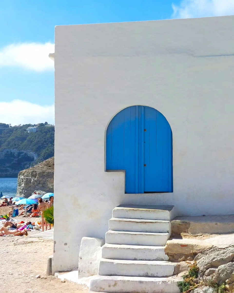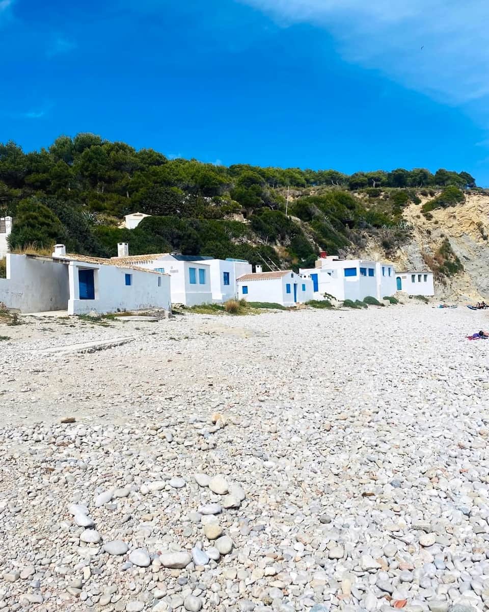 Esta impresionante bahía, con sus emblemáticas casas de pescadores blancas y azules, se ha convertido en uno de los lugares más fotografiados de Jávea. La playa de guijarros de La Barraca, con vistas a la isla de Portitxol, tiene un aire rústico y bohemio que resulta increíblemente encantador.