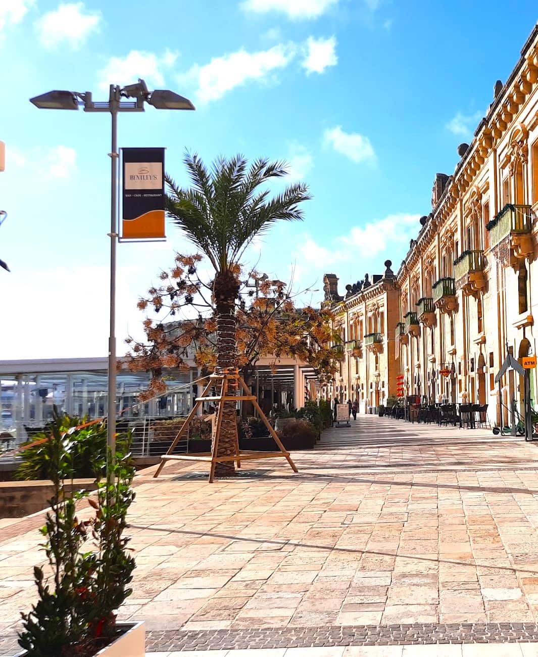 Ventajas prácticas. Las calles aquí son más nuevas y limpias que las del casco antiguo, y están mejor iluminadas por la noche. Técnicamente sigues estando en La Valeta, pero se nota más moderna y organizada. El clima suele ser más fresco aquí porque estás justo al lado del agua, lo cual es agradable durante los calurosos días de verano.