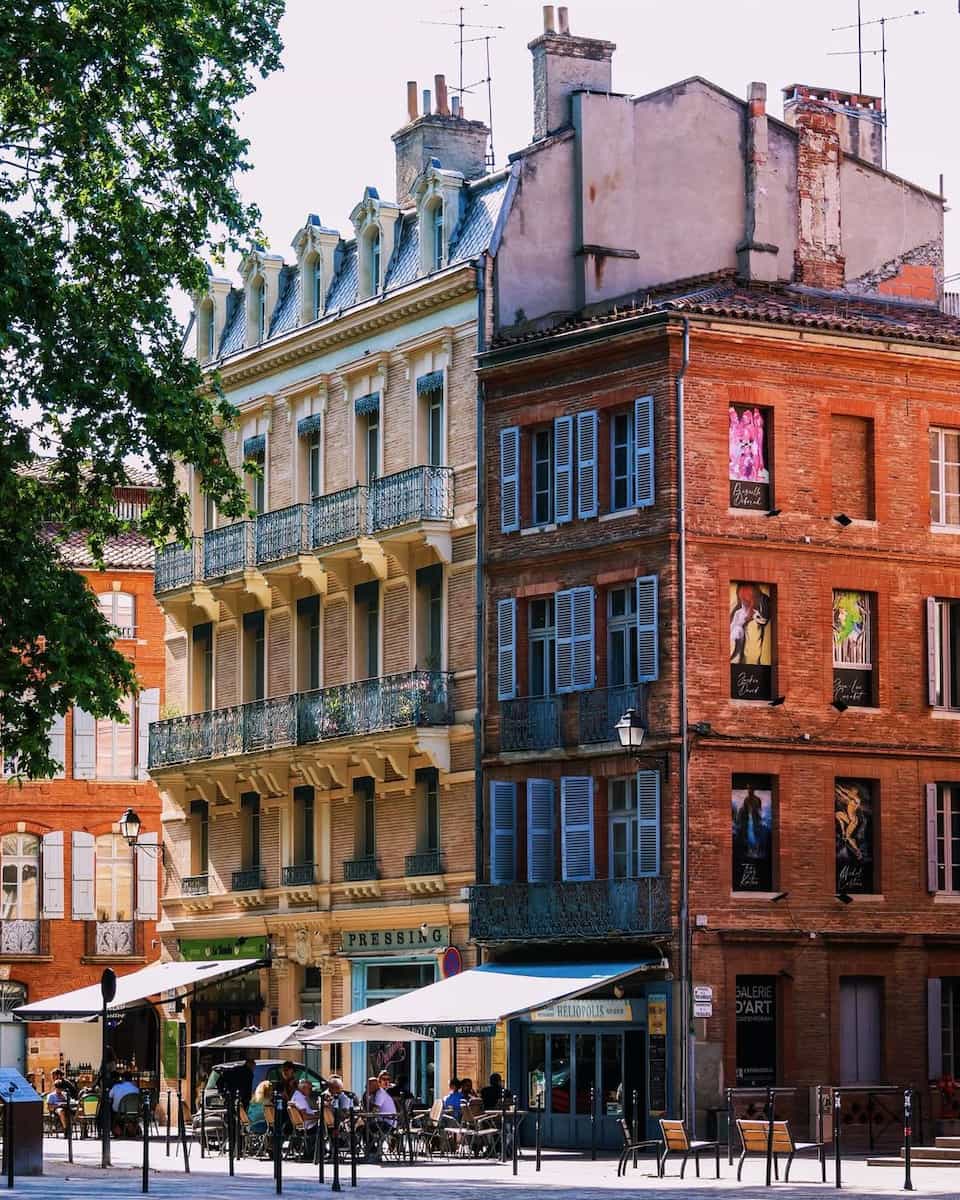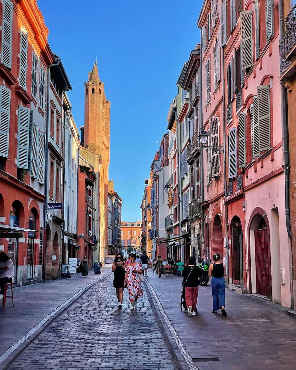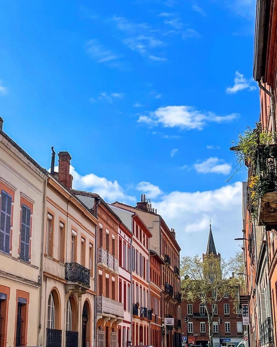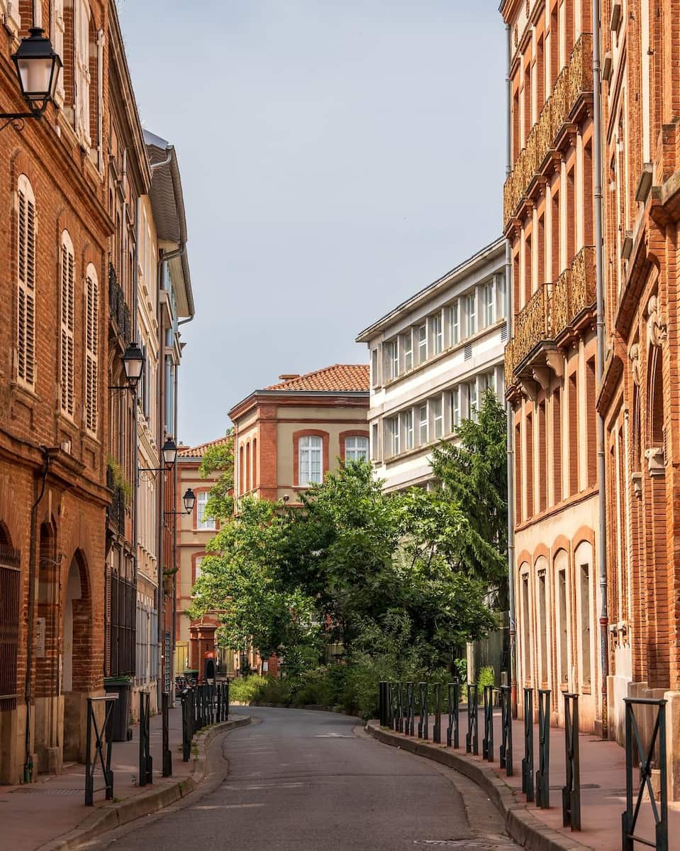 🌳 Ambiente de pueblo: Las calles están salpicadas de bellas mansiones del siglo XIX y pintorescas casas tolosanas, cuyas fachadas de ladrillo rosa brillan cálidamente bajo el sol del sur de Francia.